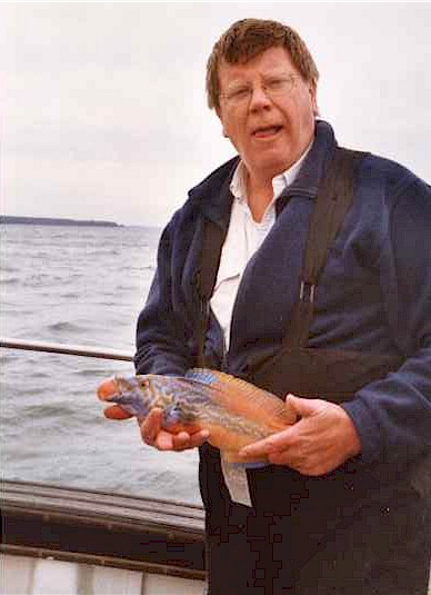 Richard Hooper (L) with one of the two fine cuckoo wrasse he caught