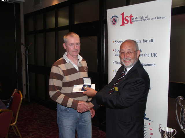 Clive Dennis presents Keith Hilton (NW) with his third place individual medal.