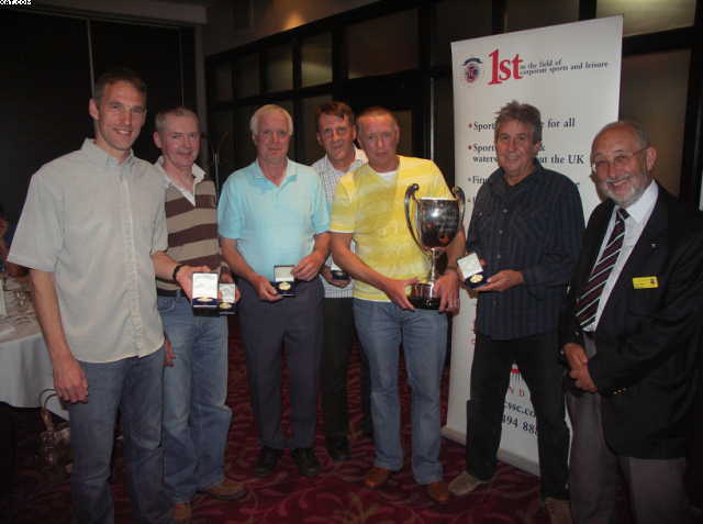 Team winners North West region Kevin Bradshaw, Keith Hilton, James Axford, Brian Hill, Clive Hill and Graham Stokes with Clive Dennis.
