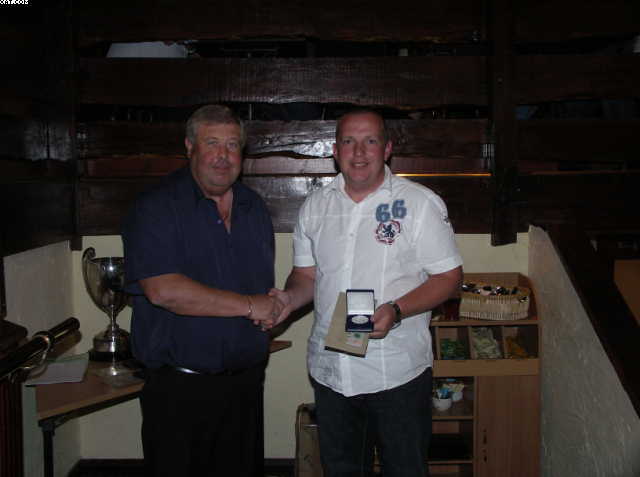 Steve Guy (Northern) with his medal for first placed individual on Rock/Meadow lakes. Medals were presented by Hampton Springs fishery manager.