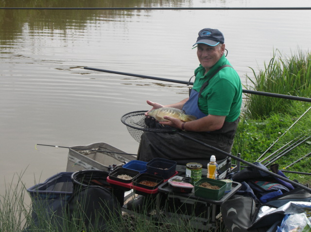 Fred Davis (L) with a small mirror carp.