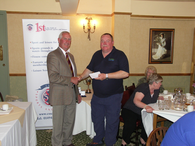 John Fell(Y) receives his tackle voucher for heaviest rainbow.