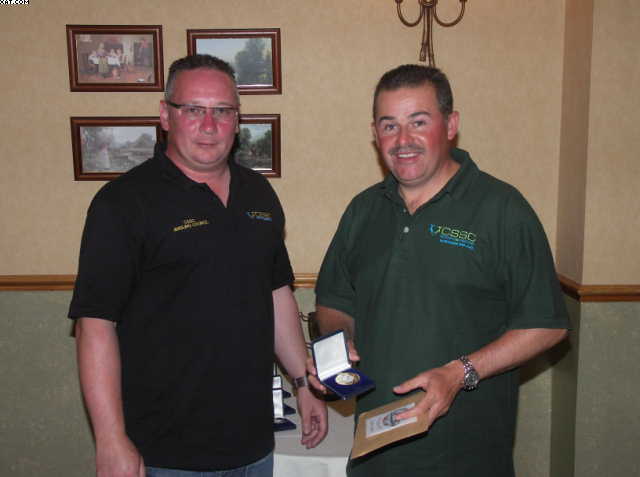 Fraser McConnell presents Jim Venning with his individual winner's medal and prize voucher supplied by Eyebrook Reservoir.