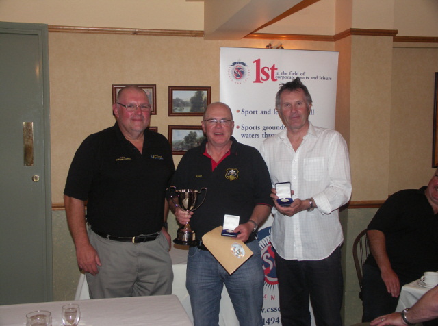 Kieron Thomas & Bob Jones (W) receiving the winners trophy and their medals.