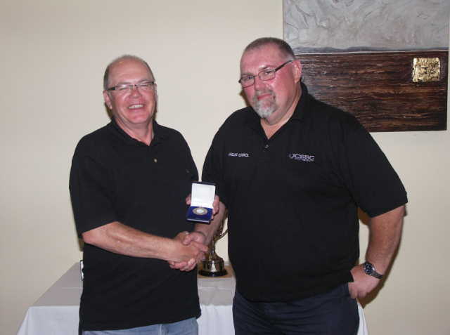 Third place individual Kieron Thomas (Wales) receives his medal from council member Andy Sinclair.
