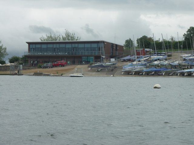 View of the pontoons, fishery office and restaurant with the sailing club alongside.