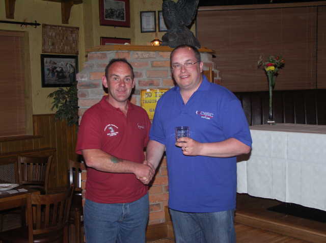 Joe Byrne (co-owner Courtown Harbour tackle) presents Iain Graham (Sc) with his winners individual engraved tumbler. previous quit next